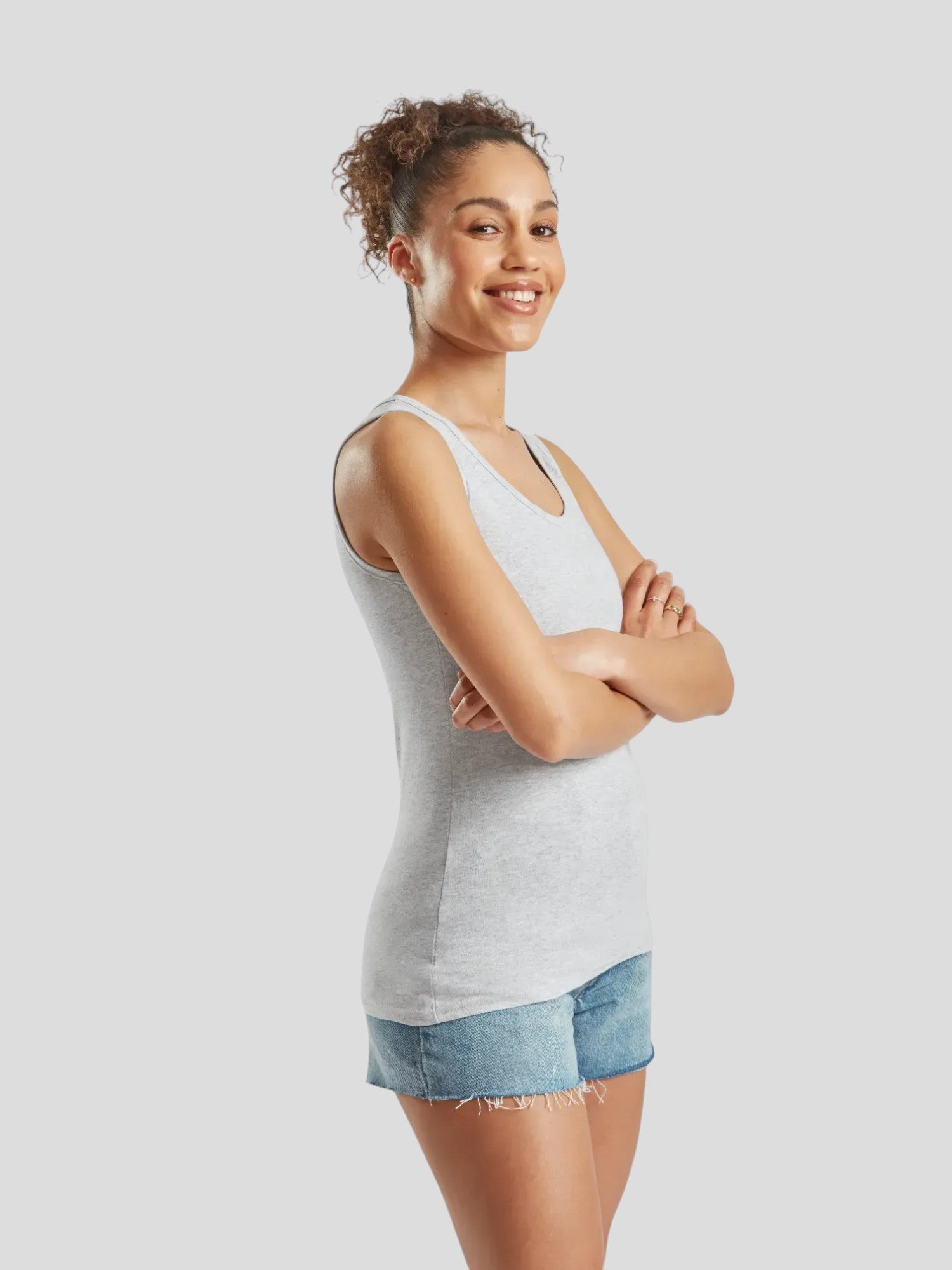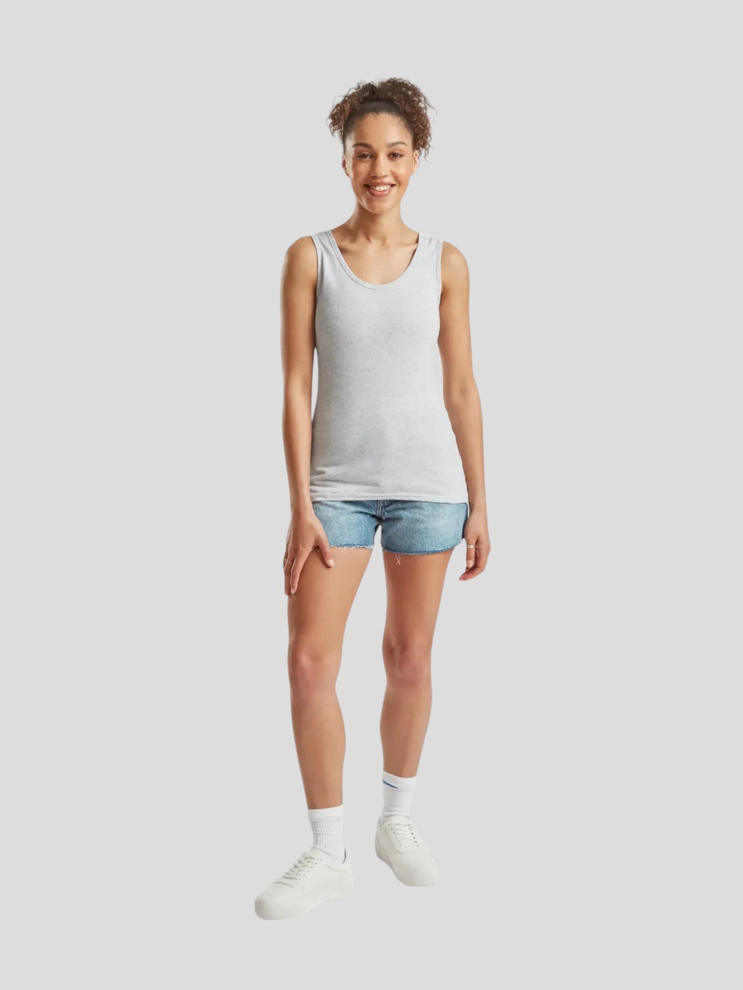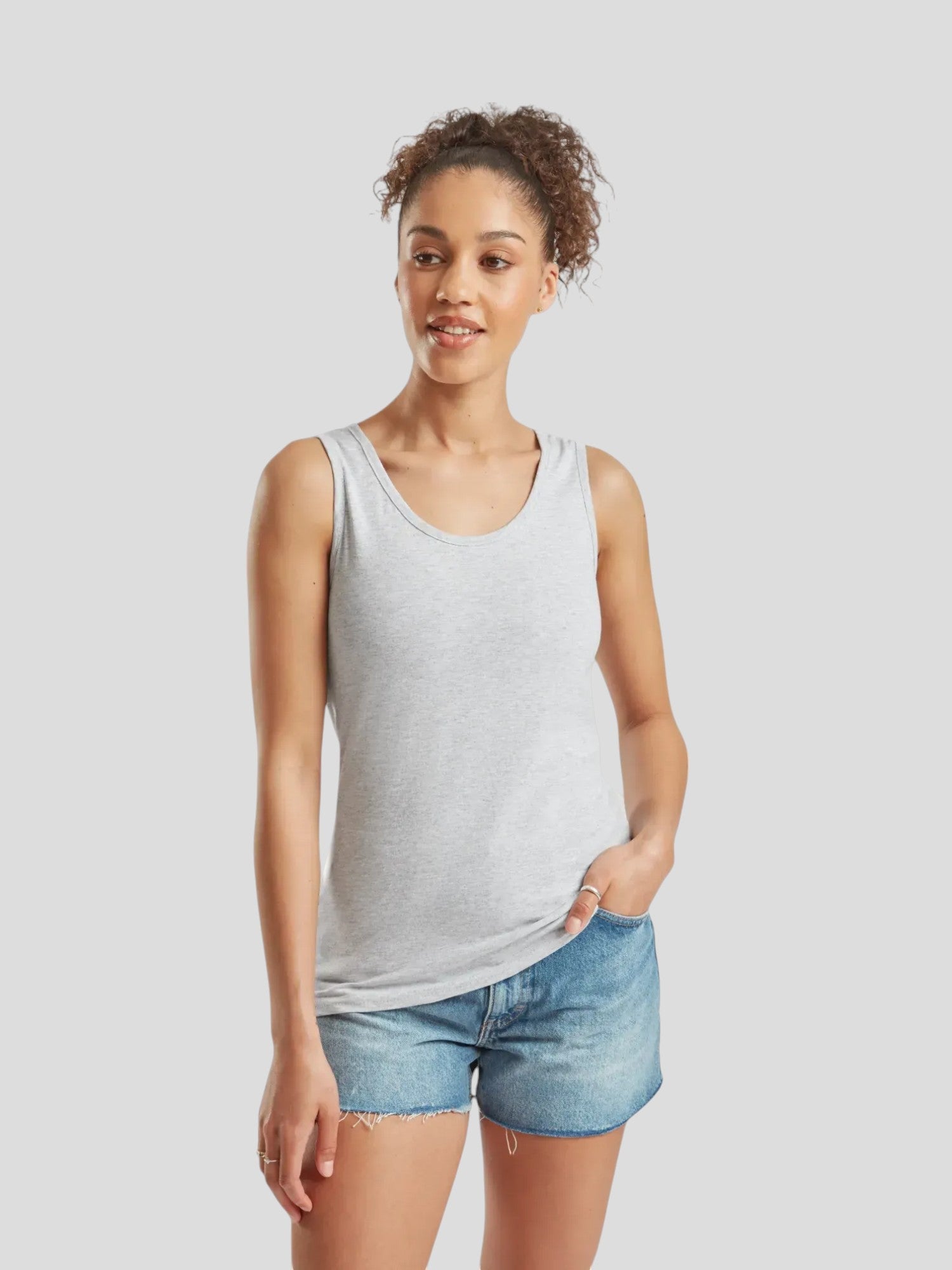 Discover style and comfort with our Ladies Valueweight Vest from Fruit of the Loom – perfect for both training and relaxed days. This tank top in lightweight and breathable material (100% cotton, grey: 97% cotton, 3% polyester) ensures comfort all day. With its feminine fit, it flatters the silhouette and is easy to style with anything. It runs relatively small in size. We recommend going one size up. Available in several colors – take advantage of our “buy more, save more” offer and update your wardrobe with this versatile essential for every woman!